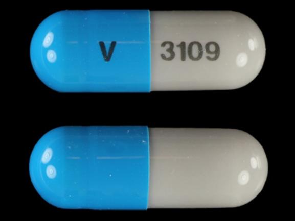 Showing 5 blue;gray pills