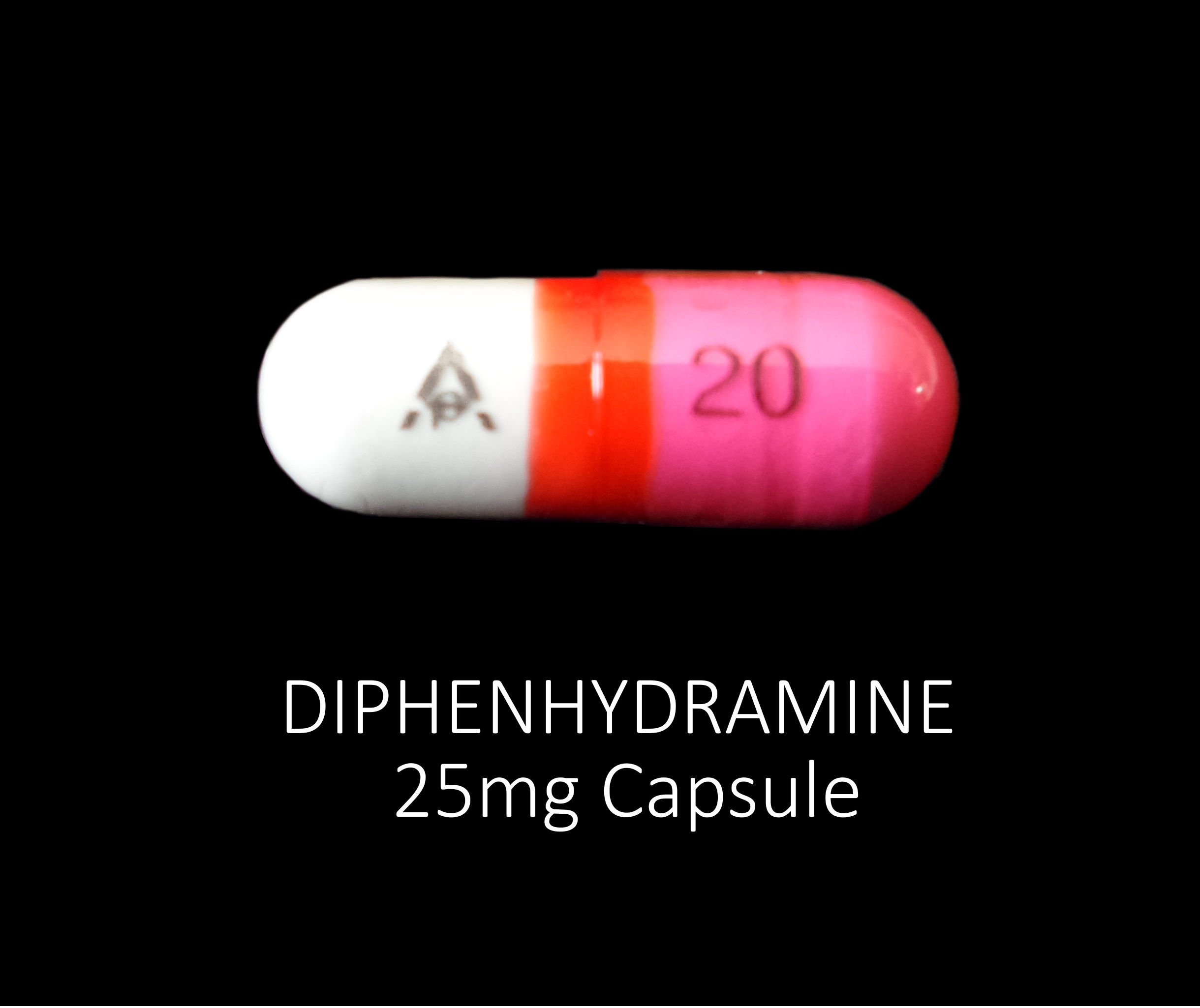 Imprint codes on Diphenhydramine pills typically indicate the manufacturer, dosage strength, and formulation. Different manufacturers may produce Diphenhydraminewith different imprints. Always confirm identification with a licensed pharmacist.