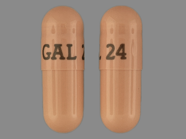 An imprint code is a combination of letters, numbers, or symbols that appears on a pill, tablet, or capsule. The FDA requires all approved drug products to have a unique imprint so that they can be identified in case of accidental ingestion or medication confusion. The imprint GAL;24 is the code found on the pill you are looking up.