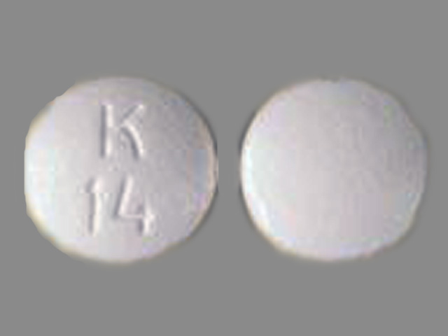 An imprint code is a combination of letters, numbers, or symbols that appears on a pill, tablet, or capsule. The FDA requires all approved drug products to have a unique imprint so that they can be identified in case of accidental ingestion or medication confusion. The imprint K;14 is the code found on the pill you are looking up.