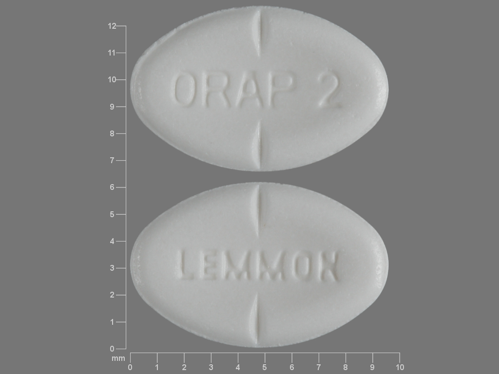An imprint code is a combination of letters, numbers, or symbols that appears on a pill, tablet, or capsule. The FDA requires all approved drug products to have a unique imprint so that they can be identified in case of accidental ingestion or medication confusion. The imprint LEMMON;ORAP;2 is the code found on the pill you are looking up.