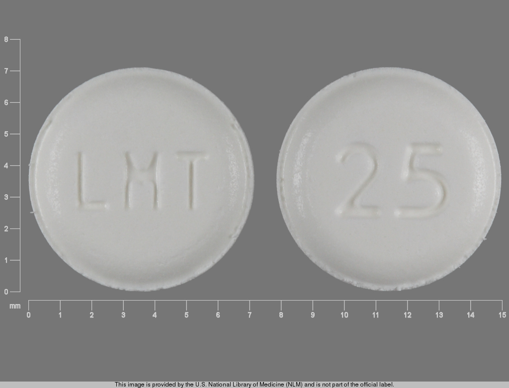An imprint code is a combination of letters, numbers, or symbols that appears on a pill, tablet, or capsule. The FDA requires all approved drug products to have a unique imprint so that they can be identified in case of accidental ingestion or medication confusion. The imprint LMT;25 is the code found on the pill you are looking up.