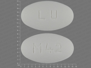 An imprint code is a combination of letters, numbers, or symbols that appears on a pill, tablet, or capsule. The FDA requires all approved drug products to have a unique imprint so that they can be identified in case of accidental ingestion or medication confusion. The imprint LU;M42 is the code found on the pill you are looking up.