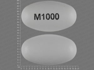 An imprint code is a combination of letters, numbers, or symbols that appears on a pill, tablet, or capsule. The FDA requires all approved drug products to have a unique imprint so that they can be identified in case of accidental ingestion or medication confusion. The imprint M1000 is the code found on the pill you are looking up.