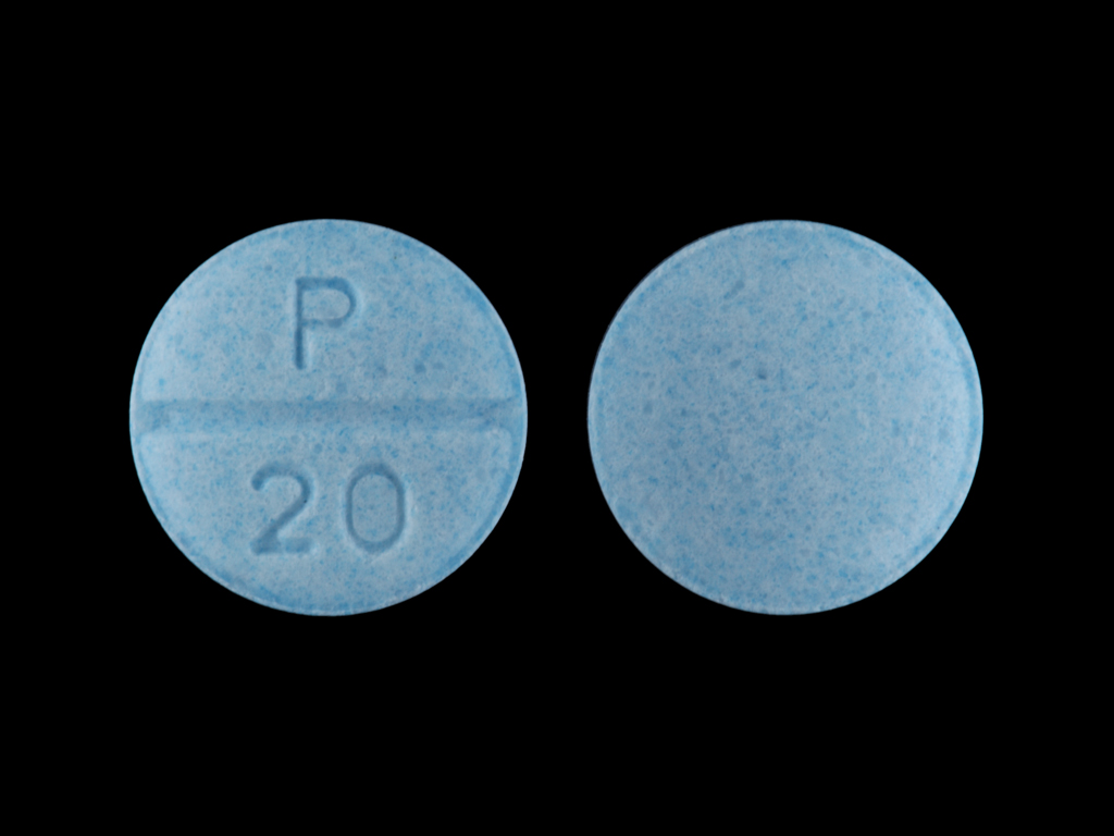 An imprint code is a combination of letters, numbers, or symbols that appears on a pill, tablet, or capsule. The FDA requires all approved drug products to have a unique imprint so that they can be identified in case of accidental ingestion or medication confusion. The imprint P;20 is the code found on the pill you are looking up.