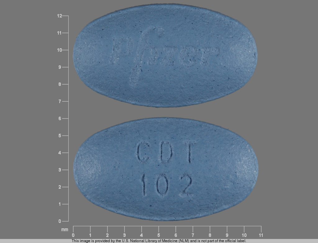 An imprint code is a combination of letters, numbers, or symbols that appears on a pill, tablet, or capsule. The FDA requires all approved drug products to have a unique imprint so that they can be identified in case of accidental ingestion or medication confusion. The imprint PFIZER;CDT;102 is the code found on the pill you are looking up.