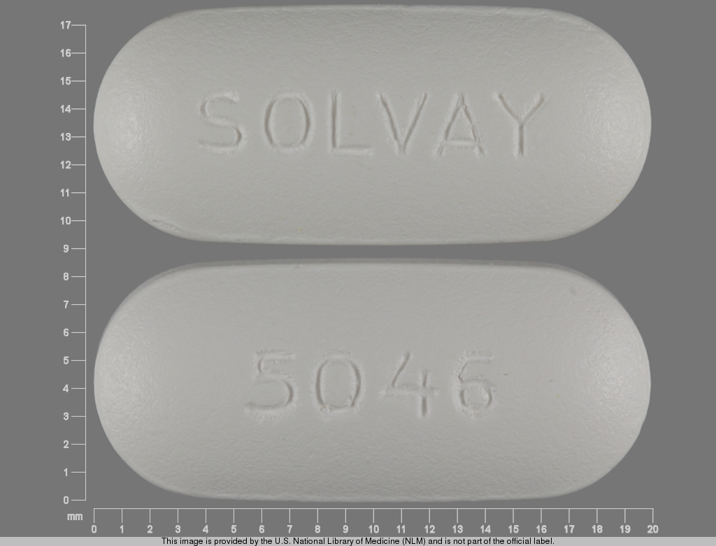 An imprint code is a combination of letters, numbers, or symbols that appears on a pill, tablet, or capsule. The FDA requires all approved drug products to have a unique imprint so that they can be identified in case of accidental ingestion or medication confusion. The imprint SOLVAY;5046 is the code found on the pill you are looking up.