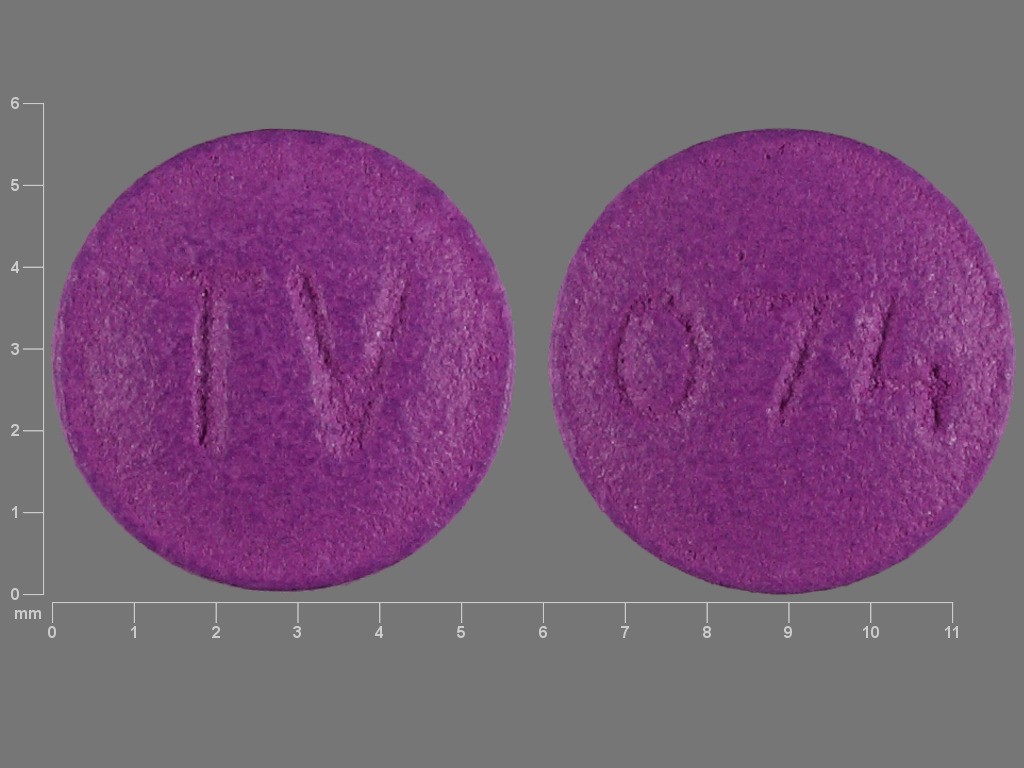 This page shows all pills in our database with the imprint code TV;074. Imprint codes are stamped or printed on pill tablets and capsules and are used to uniquely identify medications. Data is sourced from the FDA NDC Directory and DailyMed.