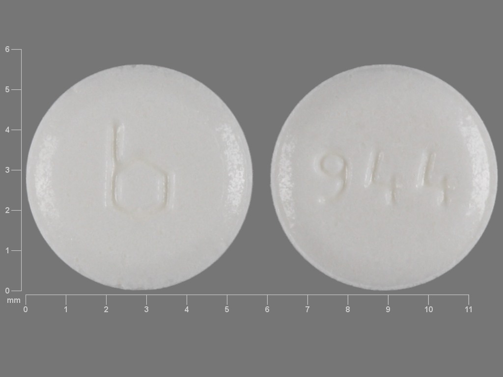 An imprint code is a combination of letters, numbers, or symbols that appears on a pill, tablet, or capsule. The FDA requires all approved drug products to have a unique imprint so that they can be identified in case of accidental ingestion or medication confusion. The imprint B;944 is the code found on the pill you are looking up.