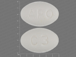 This medication is a White Oval 6 mm, Unknown with imprint "APO;C3". It is manufactured by Major Pharmaceuticals. For details please contact your physician.