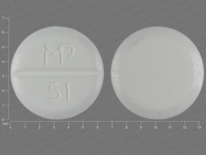 This medication is a White Round 6 mm, Unknown with imprint "MP;51". It is manufactured by Mutual Pharmaceutical Company, Inc.. For details please contact your physician.