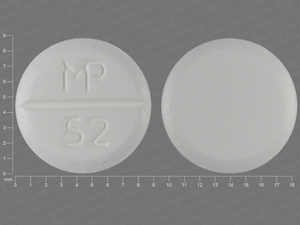 This medication is a White Round 9 mm, Unknown with imprint "MP;52". It is manufactured by Mutual Pharmaceutical Company, Inc.. For details please contact your physician.