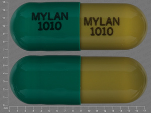 This medication is a Green Capsule 17 mm, Unknown with imprint "MYLAN;1010;MYLAN;1010". It is manufactured by Mylan Pharmaceuticals Inc.. For details please contact your physician.