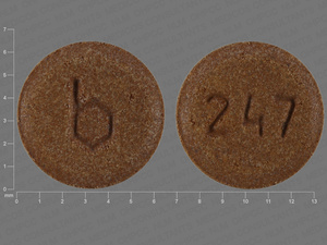 This medication is a Brown Round 5 mm, Tablet with imprint "b;247". It is manufactured by Teva Women's Health, Inc.. For details please contact your physician.