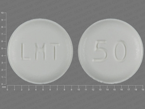 This medication is a White Round 9 mm, Tablet with imprint "LMT;50". It contains 100 mg/25 mg/50 mg of Lamotrigine 50 mg. It is manufactured by GlaxoSmithKline LLC. For details please contact your physician.