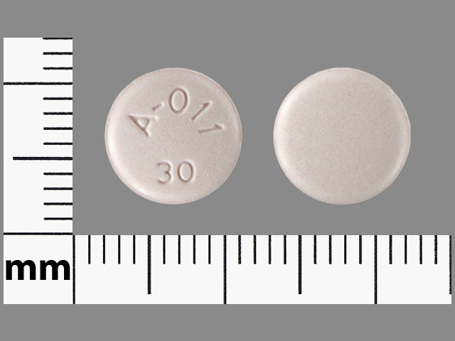 This medication is a Pink Round 9 mm, Tablet with imprint "A;011;30". It contains Aripiprazole 30 mg; of Aripiprazole[aripiprazole];. This belongs to the Atypical antipsychotic pharmacologic class. It is manufactured by Aphena Pharma Solutions - Tennessee, LLC. For details please contact your physician.