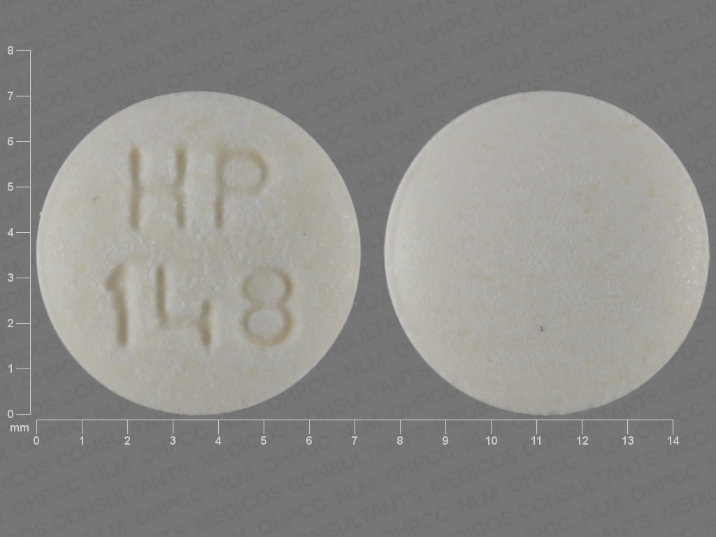 This medication is a White Round 7 mm, Tablet with imprint "HP;148". It is manufactured by Heritage Pharmaceuticals Inc. For details please contact your physician.