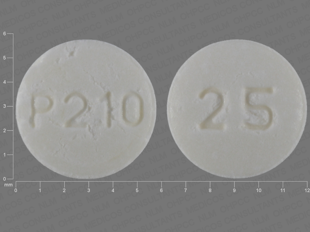 This medication is a White Round 6 mm, Tablet with imprint "P210;25". For details please contact your physician.