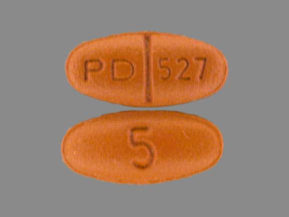 This medication is a Brown Oval 10 mm, Film coated tablet with imprint "PD;527;5". It contains Quinapril hydrochloride 5 mg; of Quinapril hydrochloride[quinaprilat];. This belongs to the Angiotensin converting enzyme inhibitor pharmacologic class. It is manufactured by Parke-Davis Div of Pfizer Inc. For details please contact your physician.