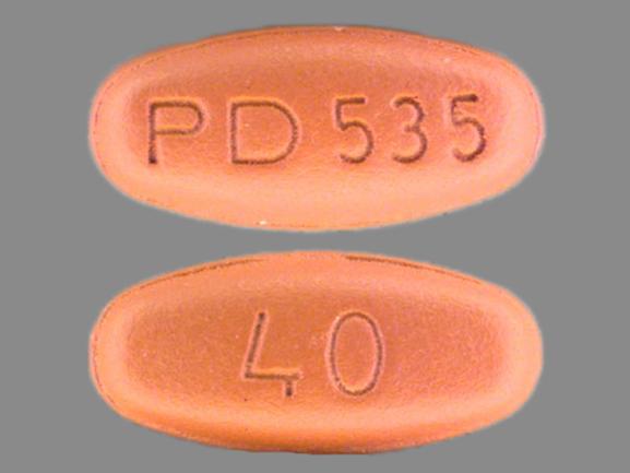This medication is a Brown Oval 15 mm, Film coated tablet with imprint "PD;535;40". It contains Quinapril hydrochloride 40 mg; of Quinapril hydrochloride[quinaprilat];. This belongs to the Angiotensin converting enzyme inhibitor pharmacologic class. It is manufactured by Parke-Davis Div of Pfizer Inc. For details please contact your physician.