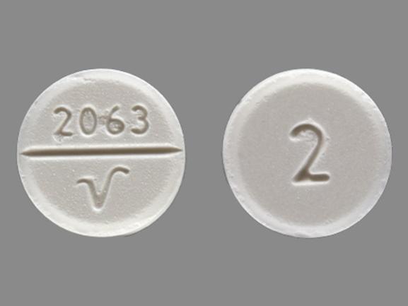 This medication is a White Round 10 mm, Tablet with imprint "2063;V;2". It contains Codeine phosphate 15 mg;acetaminophen 300 mg; of Codeine phosphate[codeine anhydrous];acetaminophen[acetaminophen];. It is manufactured by Par Pharmaceutical. For details please contact your physician.