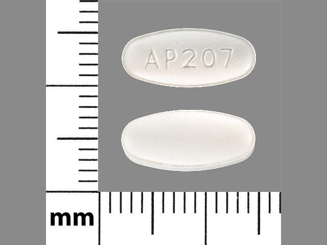 This medication is a White Oval 13 mm, Tablet with imprint "AP207". It contains Alendronate sodium 35 mg; of Alendronate sodium[alendronic acid];. It is manufactured by Blu Pharmaceuticals, LLC. For details please contact your physician.
