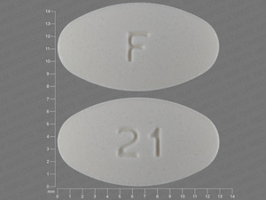 This medication is a White Oval 13 mm, Tablet with imprint "F;21". It is manufactured by Aurobindo Pharma Limited. For details please contact your physician.
