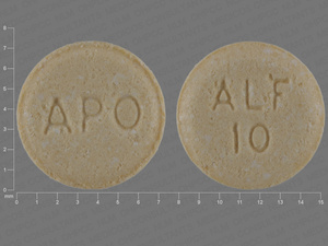 This medication is a Yellow Round 7 mm, Extended release tablet with imprint "APO;ALF;10". It is manufactured by Apotex Corp.. For details please contact your physician.