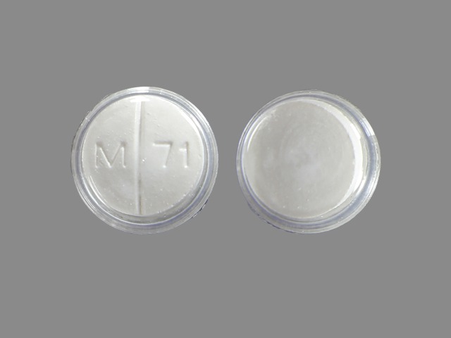 This medication is a White Round 11 mm, Tablet with imprint "M;71". It contains Allopurinol 300 mg; of Allopurinol[allopurinol];. This belongs to the Xanthine oxidase inhibitor pharmacologic class. It is manufactured by Mylan Institutional Inc.. For details please contact your physician.