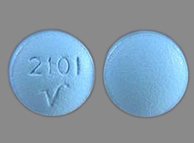This medication is a Blue Round 6 mm, Film coated tablet with imprint "2101;V". It contains Amitriptyline hydrochloride 10 mg; of Amitriptyline hydrochloride[amitriptyline];. This belongs to the Tricyclic antidepressant pharmacologic class. It is manufactured by Blenheim Pharmacal, Inc.. For details please contact your physician.