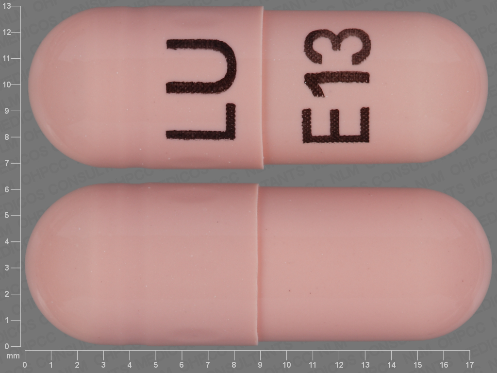 This medication is a Pink Capsule 18 mm, Capsule with imprint "LU;E13". It is manufactured by Lupin Pharmaceuticals, Inc. For details please contact your physician.