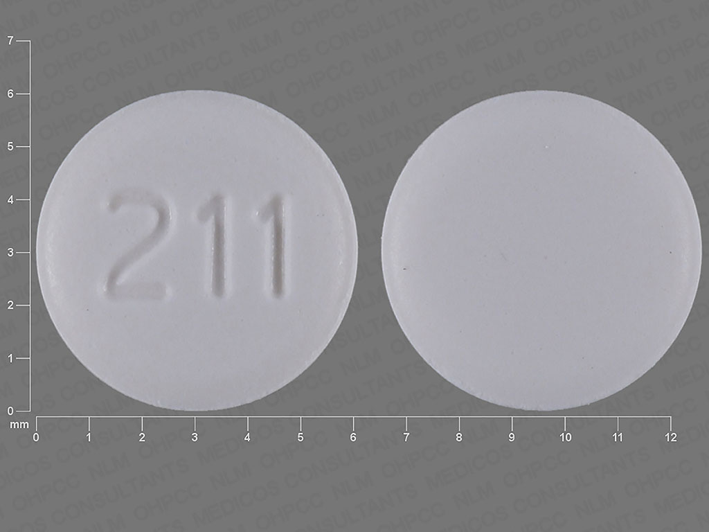 This medication is a White Round 6 mm, Tablet with imprint "211". It contains Amlodipine besylate 2.5 mg; of Amlodipine besylate[amlodipine];. This belongs to the Dihydropyridine calcium channel blocker pharmacologic class. It is manufactured by American Health Packaging. For details please contact your physician.