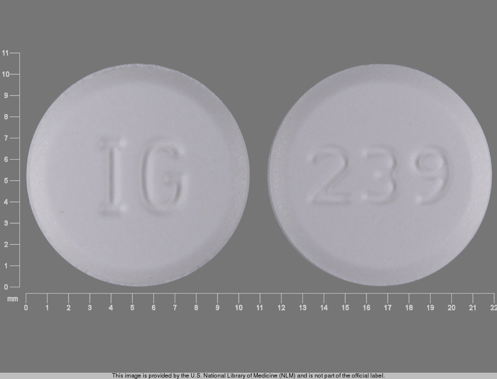 This medication is a White Round 10 mm, Tablet with imprint "239;IG". It contains Amlodipine besylate 10 mg; of Amlodipine besylate[amlodipine];. This belongs to the Dihydropyridine calcium channel blocker pharmacologic class. It is manufactured by Camber Pharmaceuticals, Inc.. For details please contact your physician.