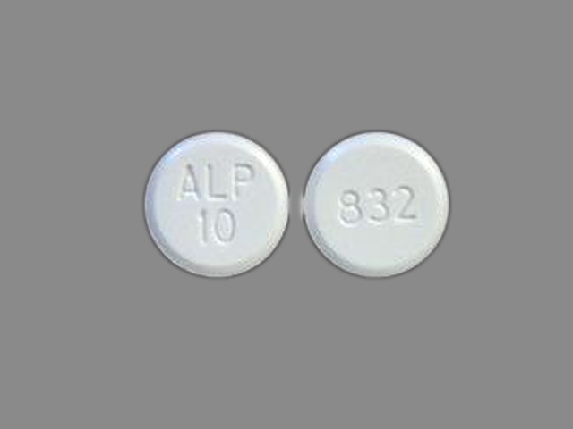 This medication is a White Round 11 mm, Tablet with imprint "ALP;10;832". It contains Amlodipine besylate 10 mg; of Amlodipine besylate[amlodipine];. This belongs to the Dihydropyridine calcium channel blocker pharmacologic class. It is manufactured by Upsher-Smith Laboratories, LLC. For details please contact your physician.
