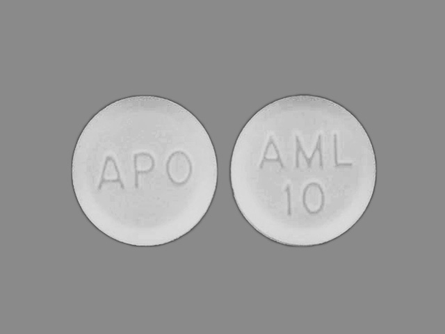 This medication is a White Round 8 mm, Tablet with imprint "APO;AML;10". It contains Amlodipine besylate 10 mg; of Amlodipine besylate[amlodipine];. This belongs to the Dihydropyridine calcium channel blocker pharmacologic class. It is manufactured by Apotex Corp.. For details please contact your physician.