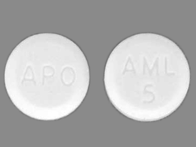 This medication is a White Round 6 mm, Tablet with imprint "APO;AML;5". It contains Amlodipine besylate 5 mg; of Amlodipine besylate[amlodipine];. This belongs to the Dihydropyridine calcium channel blocker pharmacologic class. It is manufactured by Apotex Corp.. For details please contact your physician.