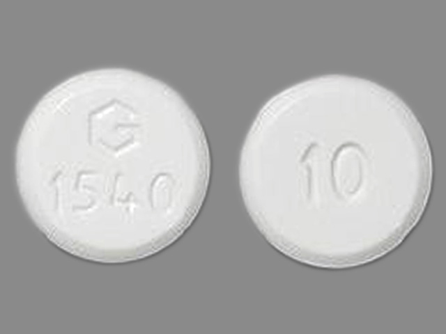 This medication is a White Round 10 mm, Tablet with imprint "G;1540;10". It contains Amlodipine besylate 10 mg; of Amlodipine besylate[amlodipine];. This belongs to the Dihydropyridine calcium channel blocker pharmacologic class. It is manufactured by Greenstone LLC. For details please contact your physician.