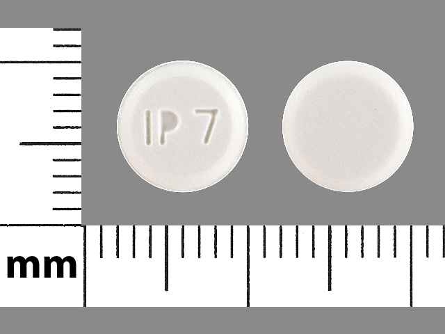 This medication is a White Round 8 mm, Tablet with imprint "IP;7". It contains Amlodipine besylate 5 mg; of Amlodipine besylate[amlodipine];. This belongs to the Dihydropyridine calcium channel blocker pharmacologic class. It is manufactured by Amneal Pharmaceuticals LLC. For details please contact your physician.