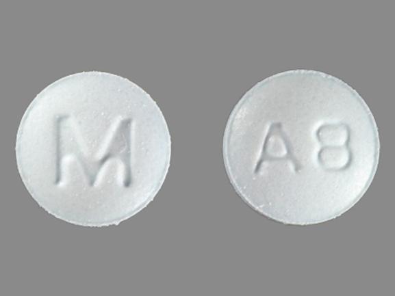 This medication is a Blue Round 6 mm, Tablet with imprint "M;A8". It contains Amlodipine besylate 2.5 mg; of Amlodipine besylate[amlodipine];. This belongs to the Dihydropyridine calcium channel blocker pharmacologic class. It is manufactured by Mylan Pharmaceuticals Inc.. For details please contact your physician.