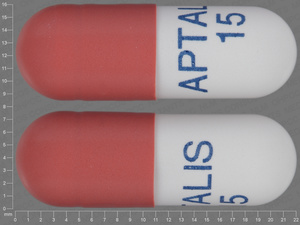 This medication is a Red, white Capsule 22 mm, Capsule with imprint "APTALIS;15". It is manufactured by Eurand Pharmaceuticals Inc.. For details please contact your physician.