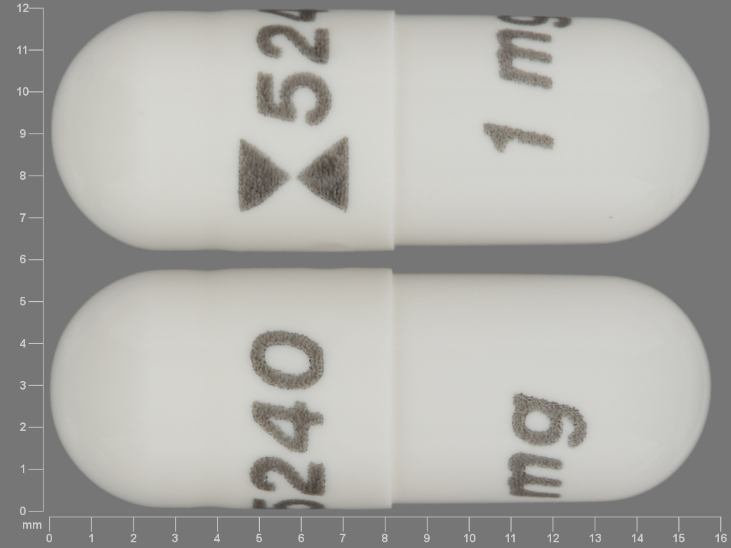 This medication is a White Capsule 16 mm, Capsule with imprint "5240;1;mg". It contains Anagrelide hydrochloride 1 mg; of Anagrelide hydrochloride[anagrelide];. This belongs to the Platelet-reducing agent pharmacologic class. It is manufactured by Teva Pharmaceuticals USA, Inc.. For details please contact your physician.