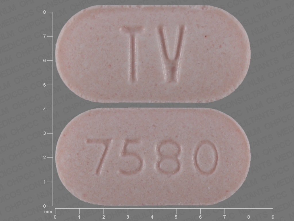 This medication is a Pink Oval 8 mm, Tablet with imprint "TV;7580". It is manufactured by Teva Pharmaceuticals USA Inc. For details please contact your physician.