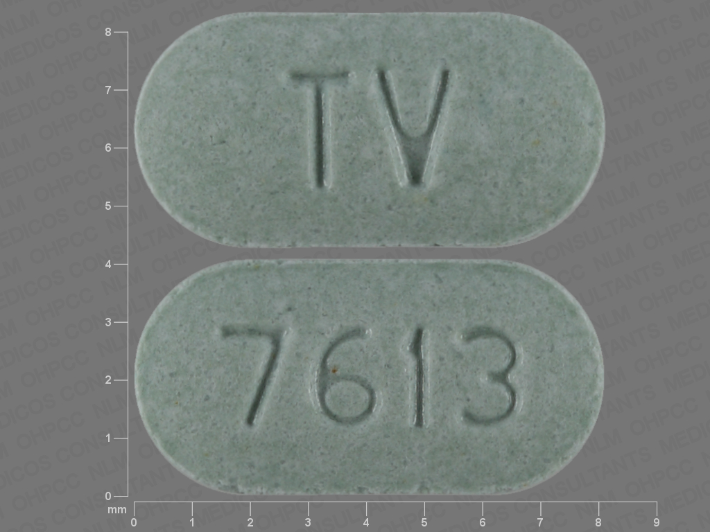 This medication is a Green Oval 8 mm, Tablet with imprint "TV;7613". It is manufactured by Teva Pharmaceuticals USA Inc. For details please contact your physician.