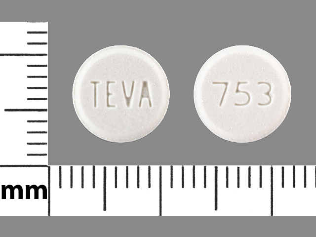 This medication is a White Round 9 mm, Tablet with imprint "753;TEVA". It contains Atenolol 100 mg; of Atenolol[atenolol];. This belongs to the Beta-adrenergic blocker pharmacologic class. It is manufactured by AvKARE, Inc.. For details please contact your physician.