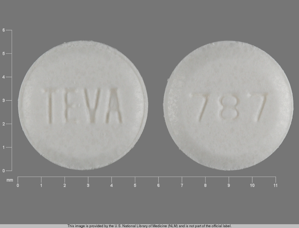 This medication is a White Round 6 mm, Tablet with imprint "787;TEVA". It contains Atenolol 25 mg; of Atenolol[atenolol];. This belongs to the Beta-adrenergic blocker pharmacologic class. It is manufactured by Teva Pharmaceuticals USA, Inc.. For details please contact your physician.