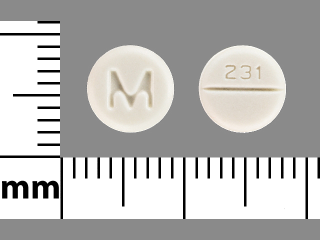 This medication is a White Round 7 mm, Tablet with imprint "M;231". It contains Atenolol 50 mg; of Atenolol[atenolol];. This belongs to the Beta-adrenergic blocker pharmacologic class. It is manufactured by Golden State Medical Supply, Inc.. For details please contact your physician.