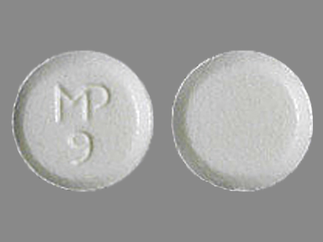 This medication is a White Round 6 mm, Tablet with imprint "MP;9". It contains Atenolol 25 mg; of Atenolol[atenolol];. This belongs to the Beta-adrenergic blocker pharmacologic class. It is manufactured by Mutual Pharmaceutical Company, Inc.. For details please contact your physician.
