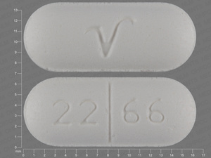 This medication is a White Oval 16 mm, Tablet with imprint "22;66;V". It contains 20 mg of Baclofen 20 mg. It is manufactured by Qualitest Pharmaceutical, Inc.. For details please contact your physician.