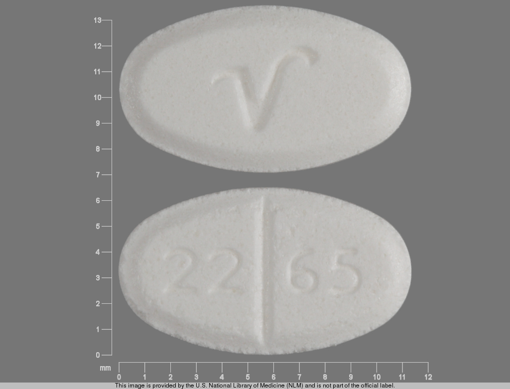 This medication is a White Oval 11 mm, Tablet with imprint "2265;V". It contains Baclofen 10 mg; of Baclofen[baclofen];. This belongs to the Gamma-aminobutyric acid-ergic agonist pharmacologic class. It is manufactured by Par Pharmaceutical. For details please contact your physician.