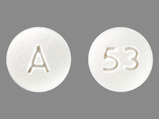 This medication is a White Round 8 mm, Tablet with imprint "53;A". It contains Benazepril hydrochloride 20 mg; of Benazepril hydrochloride[benazeprilat];. This belongs to the Angiotensin converting enzyme inhibitor pharmacologic class. It is manufactured by AvKARE, Inc.. For details please contact your physician.